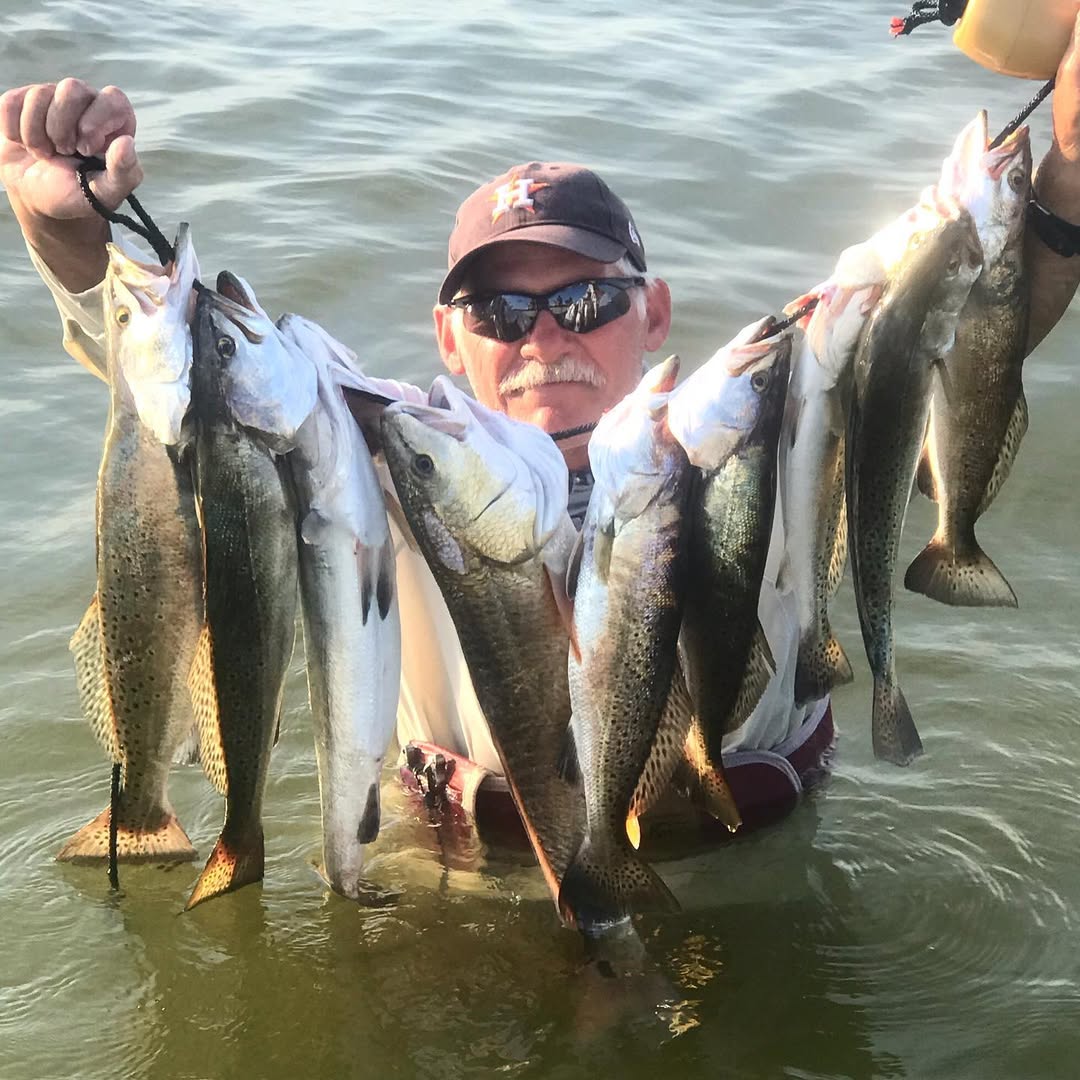 Visualizing your time with Tides and Tails Guide Service starts here. Our gallery captures the vibrant life of the Galveston Bay Complex, from the silver flash of a trophy Speckled Trout breaking the surface to the golden hues of a Gulf Coast sunset reflecting off the hull of our 25’ Boston Whaler. You’ll see more than just impressive catches; these photos highlight the peaceful backwaters of West Bay, the rhythmic movement of the tides against the jetties, and the local wildlife—from soaring ospreys to dolphins playing in the wake—that make every outing a true outdoor experience.